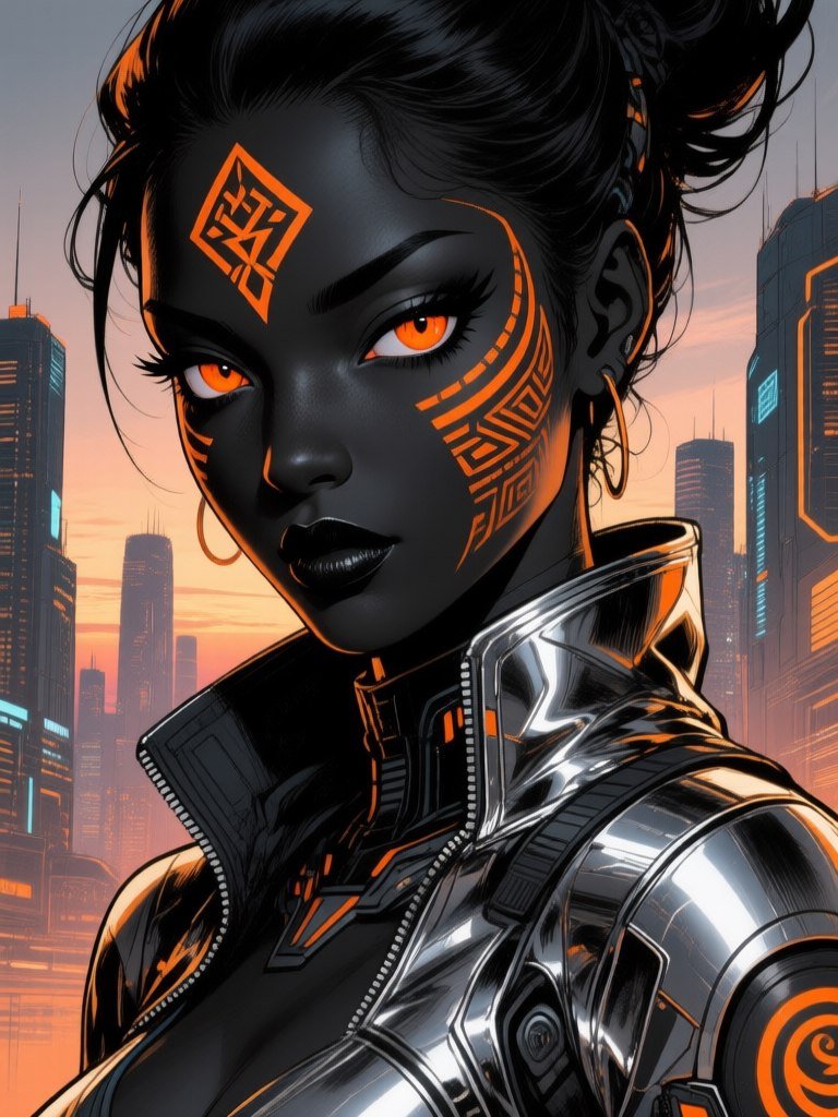 Неоновые глаза и киберпанк: портрет футуристической амазонки в стиле Джима Жена. Нейросеть Qwen Image - Qwen Images примеры промтов - Форум ИИ о нейросетях - Yes Ai