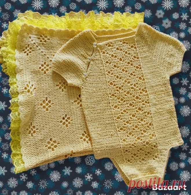 Комплект для малышки. Здравствуйте! Итак продолжаем?. В предыдущем посте был зайка Топтун, который был связан в комплект для новорождённой малышки. К сожалению на малышке показать не могу, только могу сказать, что всё подошло. Про пряжу. Пряжа хлопок с люрексом, купила при закрытии магазина, но такой...
