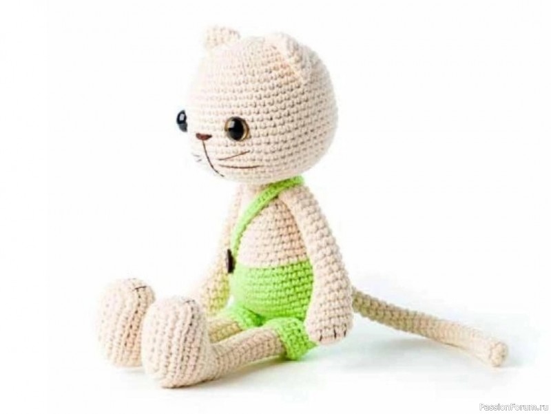 Кот в шортиках от Кристи Туллус. МК | Вязаные игрушки. Мастер-классы, схемы, описание. Размер готовой игрушки 25 см Материалы - пряжа бежевого и зеленого цветов - Крючок для вязания 2.5 мм - Наполнитель для игрушек (холлофайбер, синтепух) - Безопасные глазки 12 мм (можно использовать бусины, пуговицы или мулине для вышивания) - Небольшая пуговица ~12 мм (для декора) -...