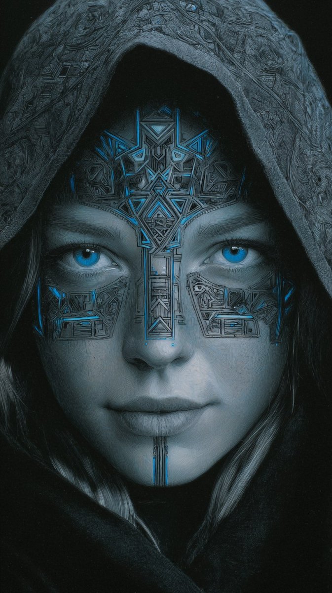 Таинственный взгляд под капюшоном: мрачный портрет женщины в темной одежде с ярким макияжем. Генерация из нейронной сети Midjourney - Midjourney примеры промтов - Форум ИИ о нейросетях - Yes Ai