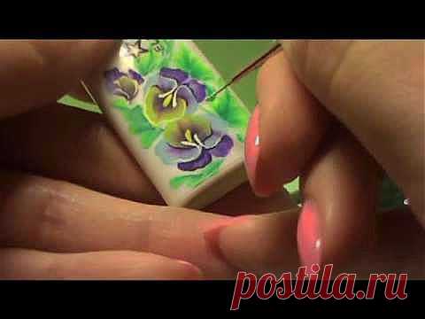 Роспись плоской кистью *Анютины глазки* - YouTube