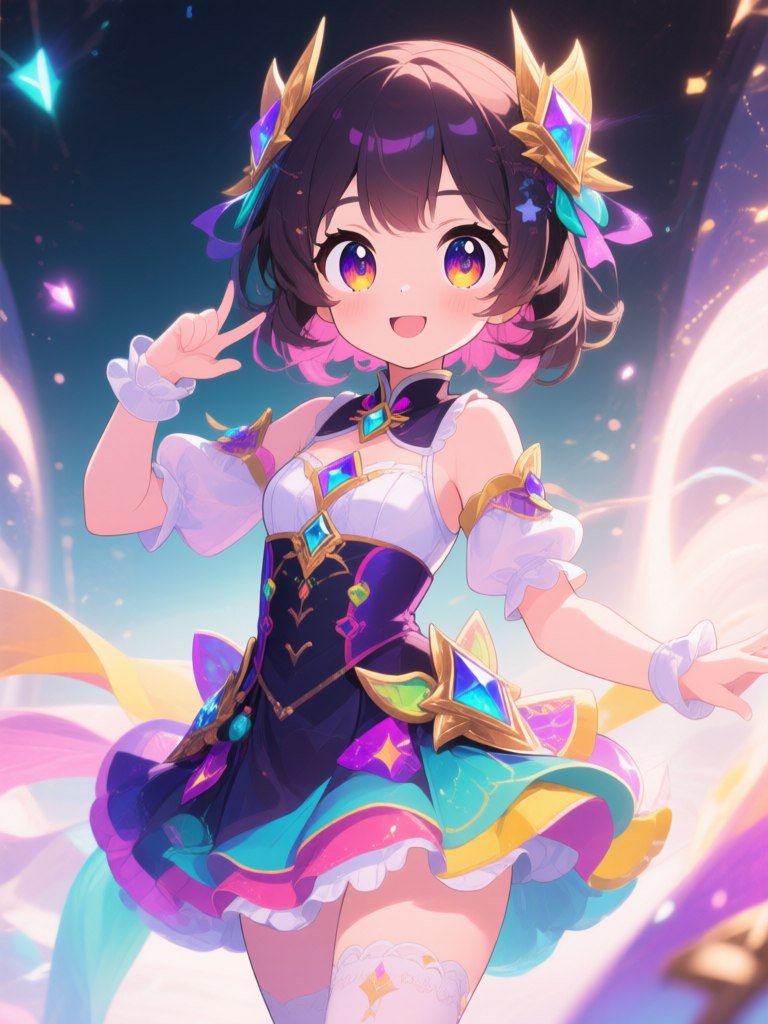 Яркий дизайн аниме-девочки с волшебным фоном и выразительными глазами. Нейронная сеть Qwen images Ai - Qwen Images примеры промтов - Форум ИИ о нейросетях - Yes Ai