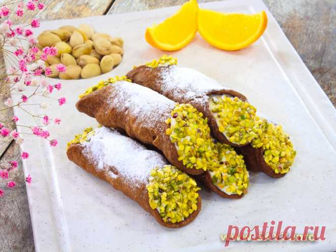 Канноли. Предлагаю вашему вниманию рецепт традиционного сицилийского десерта. Это восхитительные хрустящие трубочки с нежным кремом. Наполнять кремом трубочки желательно перед подачей, чтобы они дольше оставались хрустящими. Вино - обязательный ингредиент. Благодаря ему трубочки получаются хрустящими, нежными. Подробнее