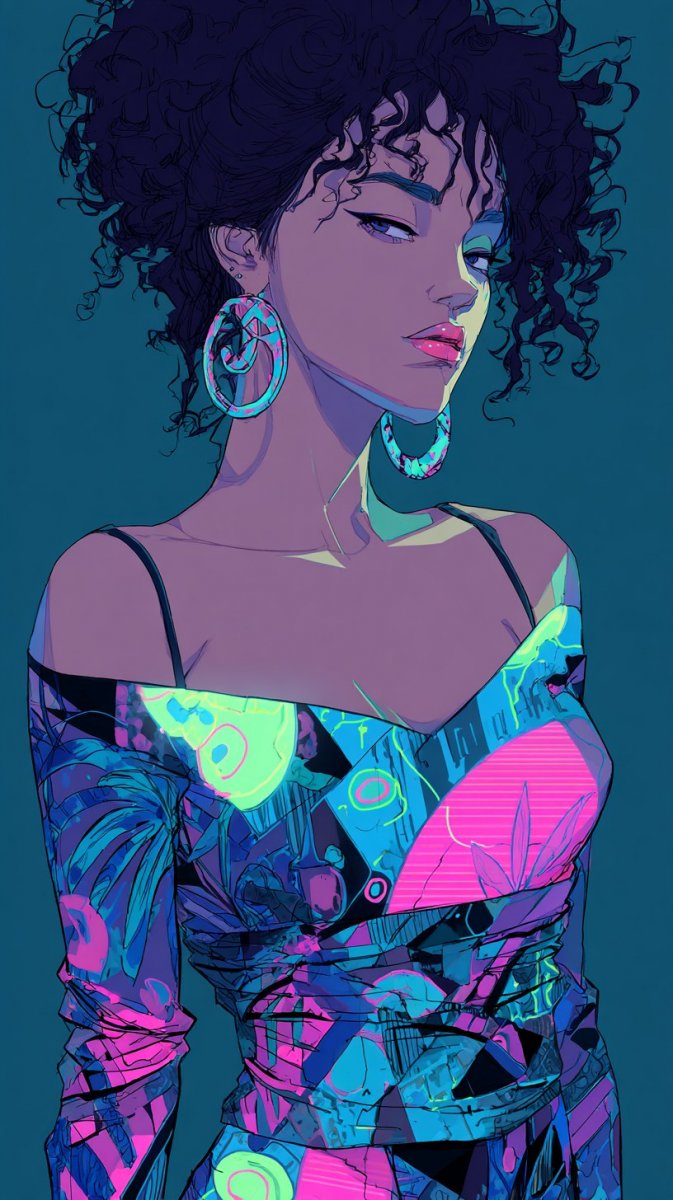 Яркая неоновая модель в экстравагантном образе высокой моды и тропическом стиле. Изображение из нейросети Midjourney - Midjourney примеры промтов - Форум ИИ о нейросетях - Yes Ai