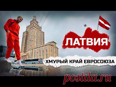 На фоне возвышается монументальное здание, словно каменный великан, смотрящий на город сквозь завесу дымчатого неба. На переднем плане — фигура в ярко-красном спортивном костюме, человек, будто выпавший из кадра советского кино или метафоры о современном герое, пронзающем время. Его уверенная поза выражает внутреннюю силу и спокойствие, несмотря на мрачную атмосферу вокруг. Рядом — флаг Латвии, который словно пульсирует на ветру, добавляя еще больше драматизма. Заголовок объявляет: "ЛАТВИЯ — ХМУРЫЙ КРАЙ ЕВРОСОЮЗА", намекая на непростую судьбу Прибалтики в современном мире. Это приглашение в путешествие, где каждый уголок источает тайны и неразгаданные послания. Словно призыв открыть эту книгу, где страницы пахнут солью Балтики и старинным кирпичом. В этом образе переплетены истории людей и зданий, звуки улицы и отголоски тишины.