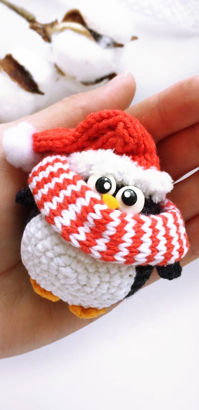 PDF Новогодние пингвинчики крючком. FREE crochet pattern; Аmigurumi doll patterns. Амигуруми схемы и описания на русском. Вязаные игрушки и поделки своими руками #amimore - маленький пингвин, пингвинята, пингвинчик, пингвинёнок.