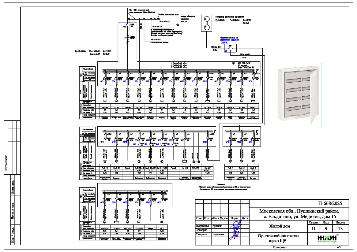 Лабиринт проводов и символов раскинулся на листе бумаги, как древняя карта, ведущая к электроэнергетическому сердцу дома. Это не просто чертеж — симфония современной инженерии, где каждый квадрат и линия несут в себе голос электричества. В центре — структура электрического щита, его белоснежная дверь открывает путь к запутанным маршрутам сети. Почтовый адрес, словно географическая метка, указывает место этой технологической загадки, проложенной в десятинах Московской области. Словно архитекторы мира будущего, чьи наполеоновские планы перевоплощаются в терминах ампер и вольт, здесь голос инженера звучит, как отзвук опыта и уверенности. Этот чертеж — итоги долгих расчетов ночей, проведенных в погружении в мир электрических токов и цифровых измерений. Словно фрагмент великого полотна, он аккуратно встраивается в мозаику городской жизни, где каждый кирпич отзывается нашему дню. Подростающее поколение смотрит на это произведение и видит в нем не только технический шедевр, но и просторы для новых открытий.