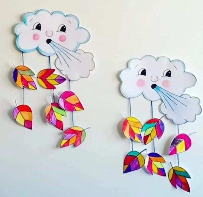 На белизну стены, словно на канву, выпали два пушистых облака, детским восторгом напоминая о сказочных землях и мечтах. Их розовые щёчки и озорные улыбки словно подразнимали мир вокруг, выдувая наивные дыхания, которые превращались в яркие осенние листья. Каждый лист — палитра диковинных оттенков, танцующая в водовороте весёлого ветра. Этот осенний вихрь говорит на всех языках природы, шепча о неуловимых переходах времён года и вечной детской игре. Тут же вспоминаются истории о том, как сильный ветер может даровать сказочным героям невидимые крылья. Чудо! И тёплое солнце, клубясь сквозь облака, освещает этот театральный акт, покоряющий как взрослое, так и детское сердце.