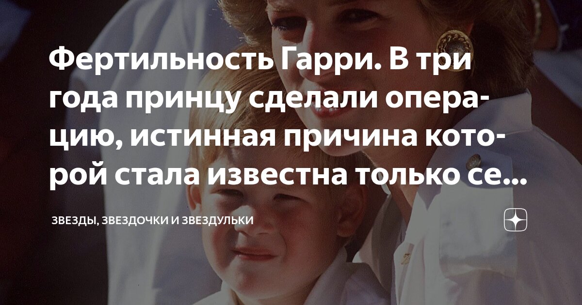 Фертильность Гарри. В три года принцу сделали операцию, истинная причина которой стала известна только сейчас Статья автора «Звезды, звездочки и звездульки» в Дзене ✍: 10 мая 1988 года британские СМИ довольно буднично сообщили, что принц Гарри перенес операцию по удалению грыжи: "Принц Гарри, трехлетний сын