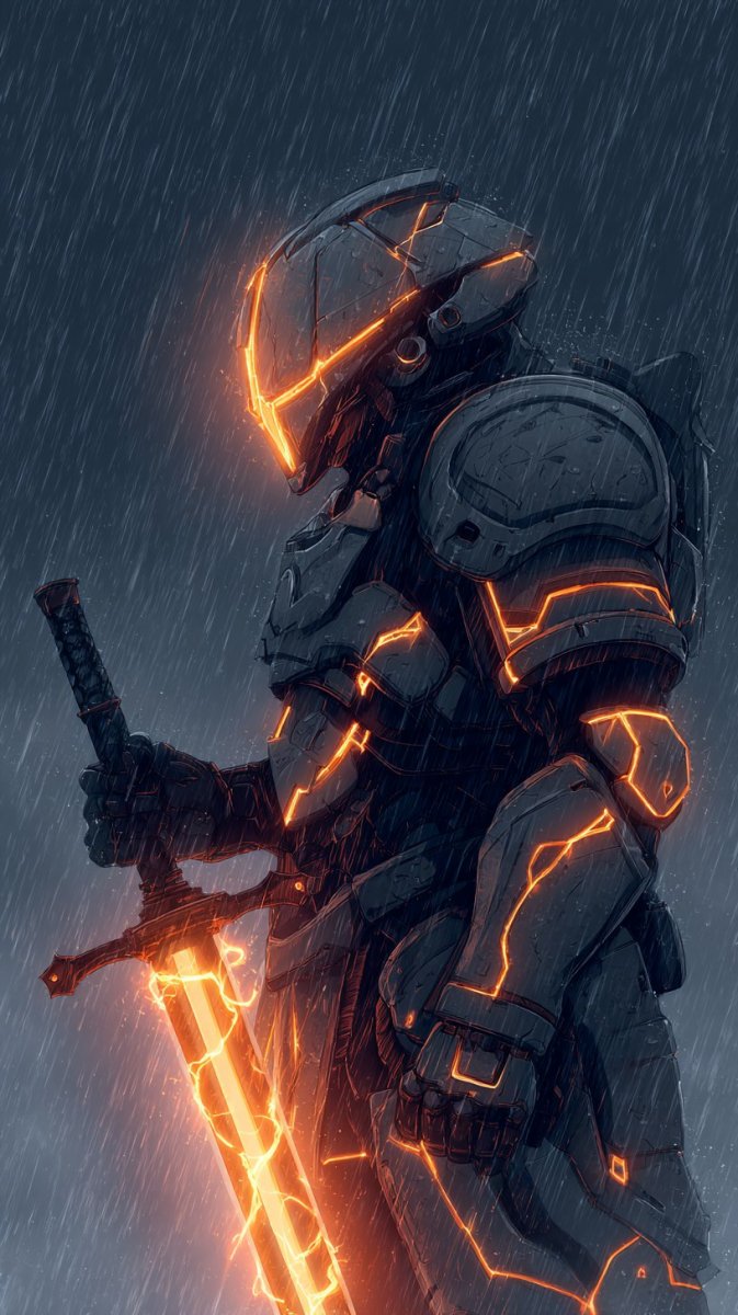 Воин в обсидиановой броне под бурей. Картинка из нейросети Midjourney - Midjourney примеры промтов - Форум ИИ о нейросетях - Yes Ai