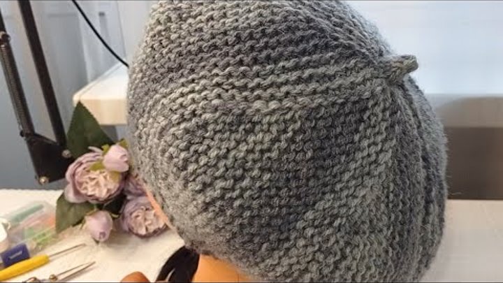 Интересный,поперечный способ вязания берета клиньями и укороченными рядами...