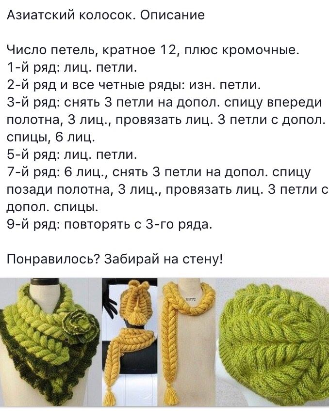 Узор колосок спицами схема и описание страница номер тридцать девять