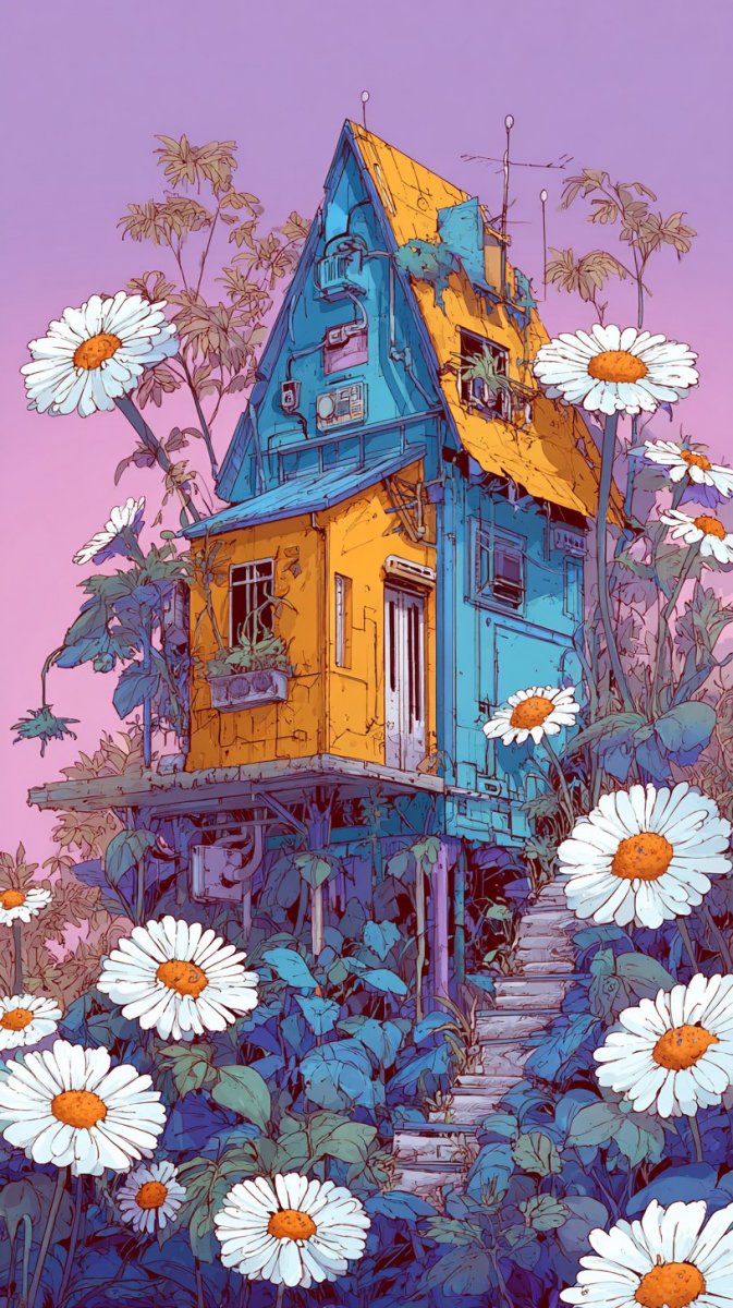 Яркий домик и ромашки в сказочном стиле. Нейросеть Миджорни - Midjourney примеры промтов - Форум ИИ о нейросетях - Yes Ai