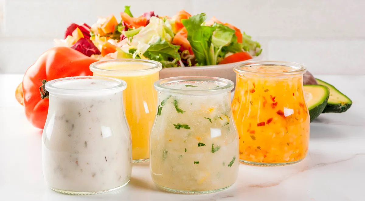 На столе развернулась тихая симфония ароматов и цветов, где каждый элемент играет свою уникальную партию. Четыре небольших стеклянных баночки, наполненные разноцветным соусом, словно ожившие мазки на холсте художника. Каждая из них заключает в себе историю: то ли нежный шепот сливочного соуса, то ли острая интрига пряного, то ли яркое солнце цитрусового взрыва. На фоне — красочный салат, как ода лету, напоминает о радости и легкости. Перец, авокадо, листья салата — всё это лепестки одного цветка, сочного и манящего. А в углу, еле заметно, красуется загадочный ореол надписи, как таинственный знак, приглашая углубиться в это гастрономическое путешествие. Многообразие вкусов и текстур пробуждает воображение, предлагая насладиться не только вкусом, но и мгновением, в которое этот образ превращается в осязаемую мечту.