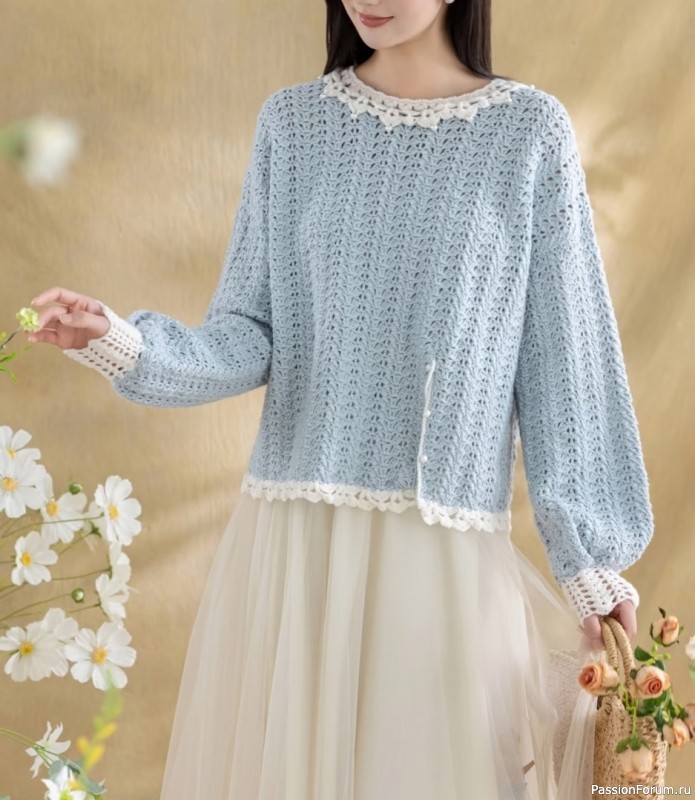 Ажурный джемпер крючком. Схемы | Женская одежда крючком. Схемы и описание