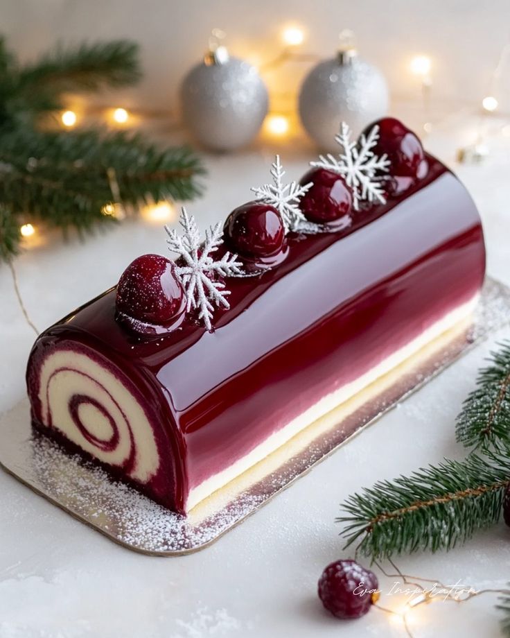 Bûche de Noël brillante effet miroir – version roulée revisitée et ultra chic