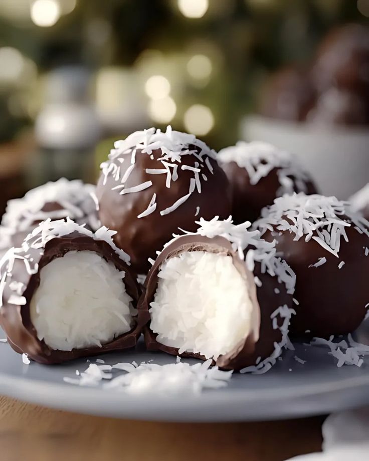 **🥥 No-Bake Coconut Cream Balls – A Sweet Tropical Delight! 🍫** These chewy, coconut-packed treats are easy to make and impossible to resist! With a creamy texture and a luscious chocolate coating, they’re the perfect no-bake indulgence. 🍬✨ ### **Ingredients:** - 2 ½ cups **shredded coconut** - 1 cup **sweetened condensed milk** - ½ tsp **vanilla extract** - 1 cup **powdered sugar** - ½ cup **chopped nuts** (optional) - 8 oz **white or semi-sweet chocolate**, melted ### **Directio...