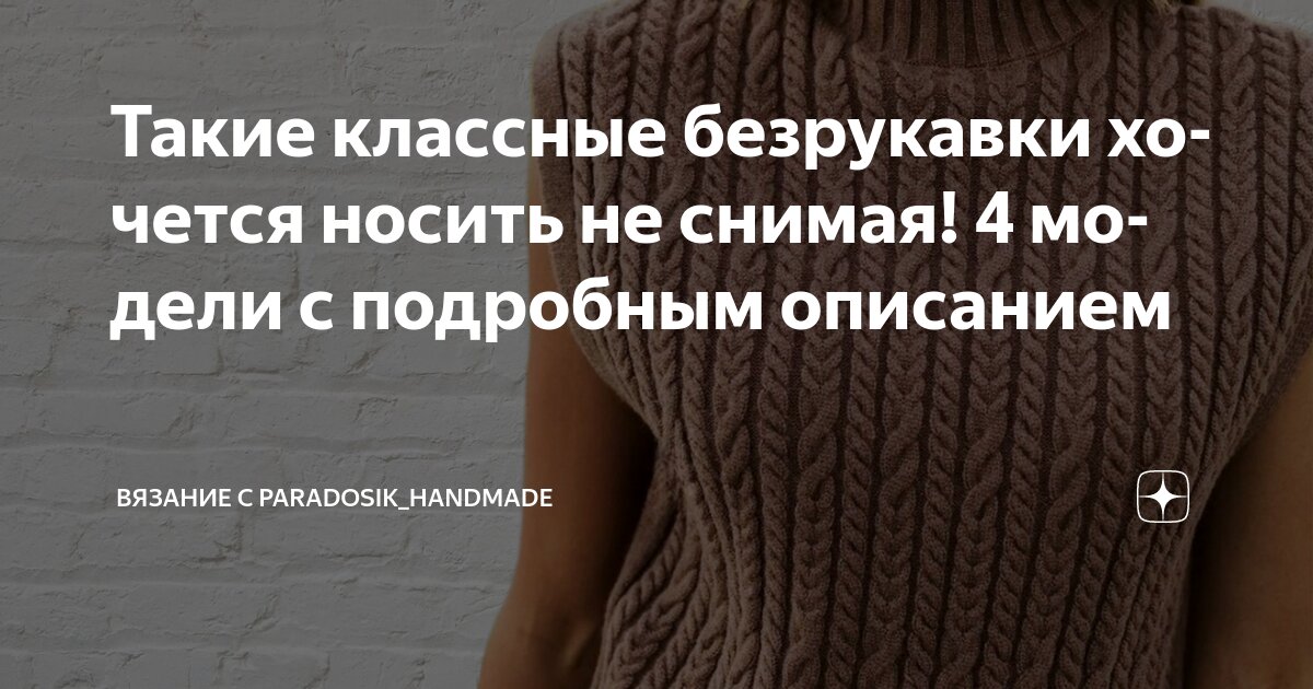 Такие классные безрукавки хочется носить не снимая! 4 модели с подробным описанием Статья автора «Вязание с Paradosik_Handmade» в Дзене ✍: Безрукавки и жилеты меня никак не отпустят. Люблю я такие вещи — и носить их можно под что угодно, и вяжутся довольно быстро!