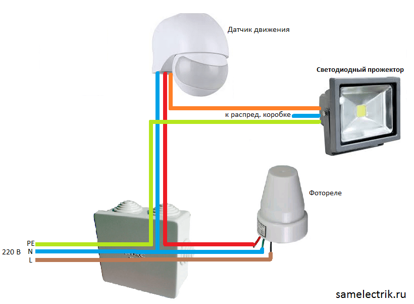 Схема подключения прожектора к сенсору и фотореле - Сам электрик