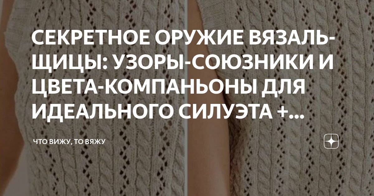 СЕКРЕТНОЕ ОРУЖИЕ ВЯЗАЛЬЩИЦЫ: УЗОРЫ-СОЮЗНИКИ И ЦВЕТА-КОМПАНЬОНЫ ДЛЯ ИДЕАЛЬНОГО СИЛУЭТА + СХЕМЫ УЗОРОВ Статья автора «Что вижу, то вяжу» в Дзене ✍: Дорогие мои любительницы спиц и крючка! С вами снова я, Марина Машевски и канал «Что вижу, то вяжу».