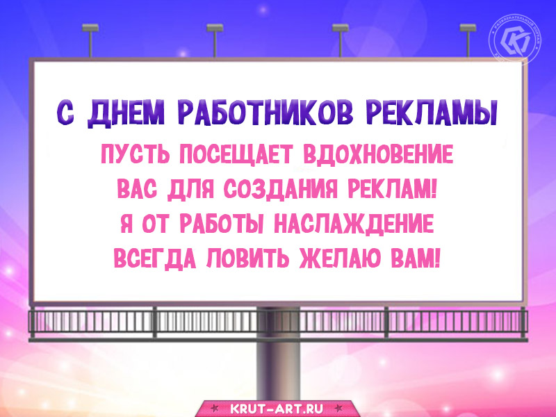 С Днем работника рекламы!Чтоб работа, как забава,Только радость приносила,Много мыслей, креатива. Открытки на День рекламщика!