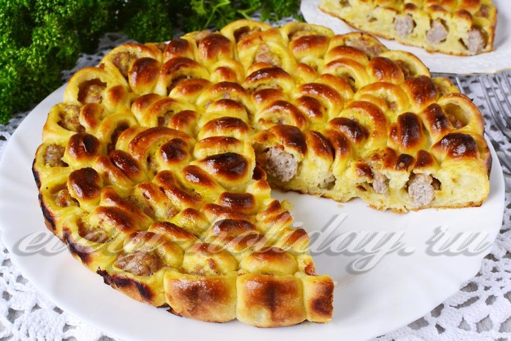 Мясной пирог "Хризантема", рецепт с фото пошагово
