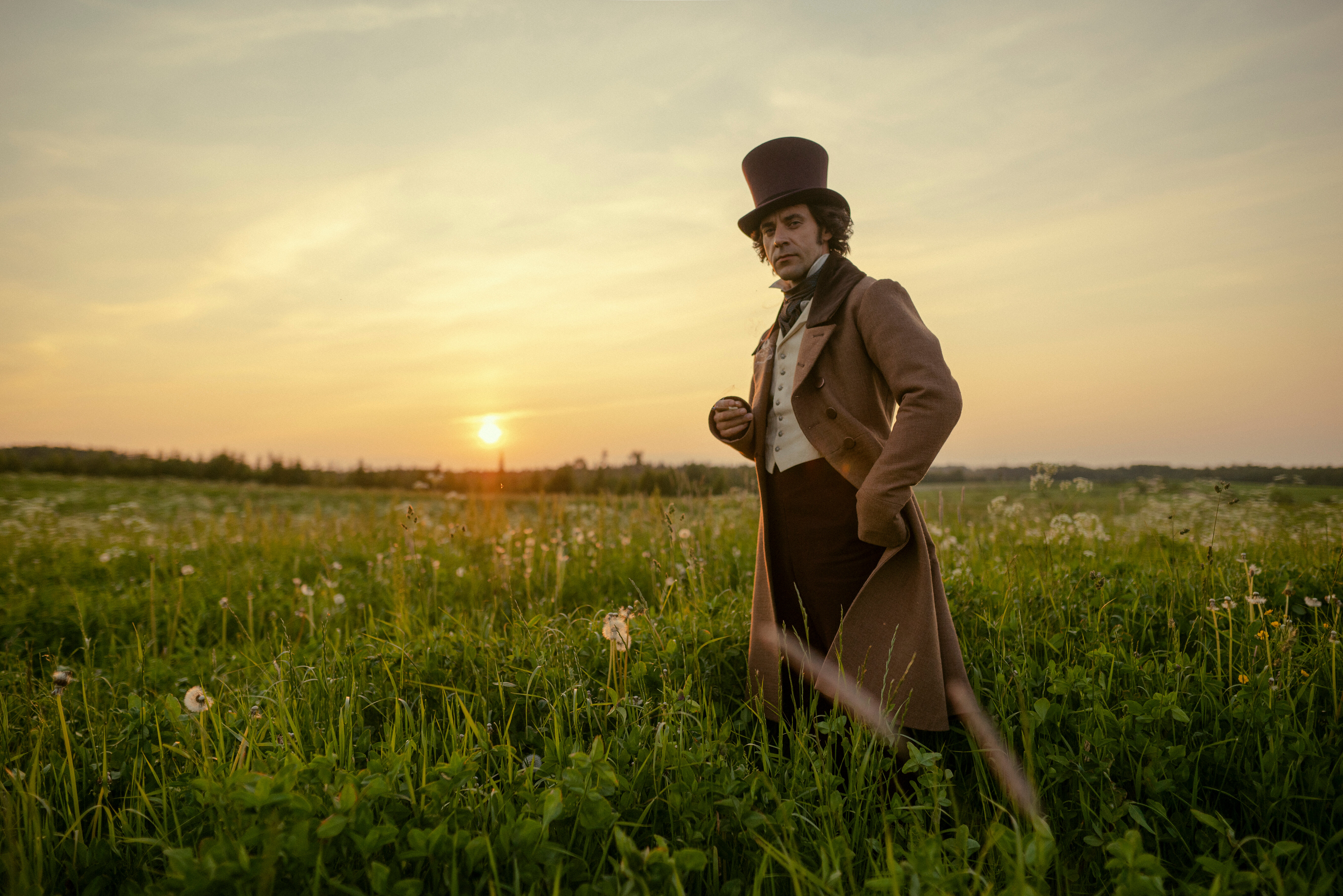 Закатное солнце, словно потухающий канделябр аристократического салона, укрыло горизонт багровыми красками, наполняя воздух сладостной меланхолией уходящего дня. На фоне безмолвных лугов, усыпанных дикими ромашками, фигура в цилиндре возвышается как тёмный силуэт в кадрах черно-белого кино. Его жест — лёгкий, словно взмах крыла редкой птицы, отражает смесь уверенности и усталости. Костюм, как у героев Толстого, в который вложена вся суть эпохи — строгие линии, подчеркнутая элегантность. Здесь будто разворачивается история, уносящая нас в иной мир, где границы между реальностью и мечтами размыты и непознаваемы. Шёпот полевого ветра переносит слова недосказанной одиссеи, пляс жары и тени творит чудеса на лице незнакомца. Он словно мост между прошлым и настоящим, забытой манерой приветствуя каждый лепесток под ногами.
