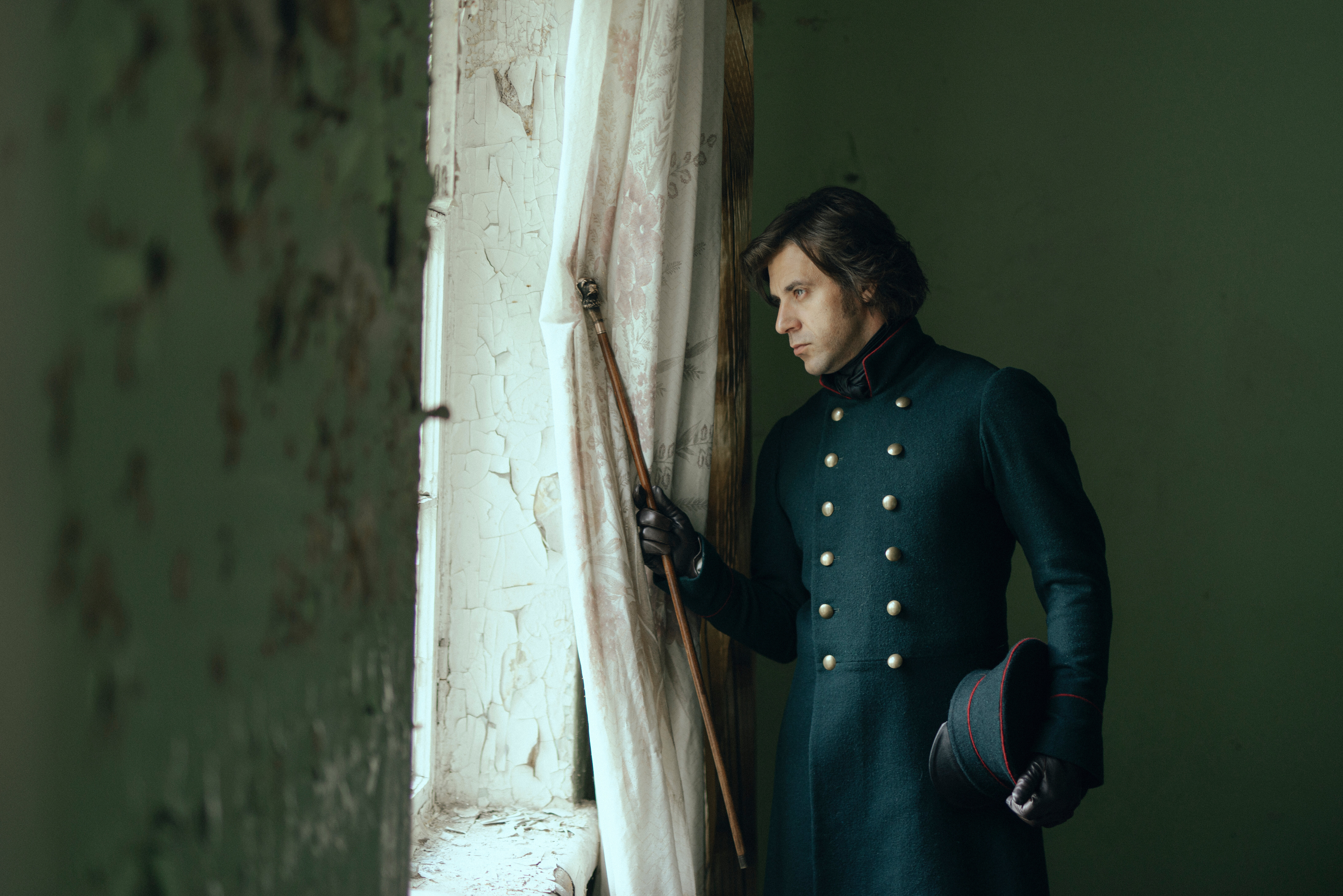 В этом затихшем, словно погружённом в забытье, уголке времени и пространства, он стоит у окна, одетый в длиннополое пальто с медными пуговицами. Это не просто человек — это образ, застывший во времени. Из окна льётся мягкий утренний свет, обрисовывая патину возраста на потрескавшейся стене, словно мазки старого мастера. Рука его, придерживая плотную ткань грубовато-литой шторы, кажется сказочной кистью, оживляющей мир. Взгляд его устремлён за границу комнаты, туда, где реальность встречает тишину и покой. Коричневая шляпа в другой руке — символ путешествия, странствий и вековых размышлений. Между светом и тьмой, в этом зыбком переходе, прячутся истории городов, слова писем, запахи далёких махорочных полей. В этом взгляде, в этом одеянии проглядывает таинственный романтизм ушедших эпох, роман из звуков шагов на помосте и скрипов давно забытых пружин старых перьев.