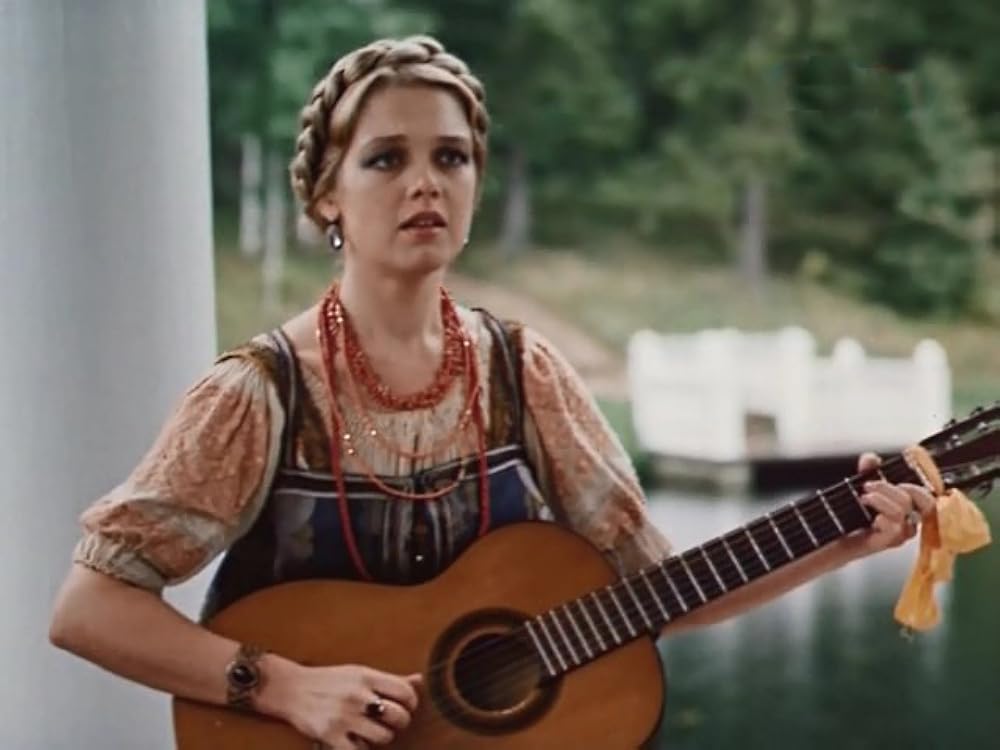 На снимке, как из древнего фольклора, нежно играет тихая мелодия. Девушка с гитарой в руках, словно вырезанная из холста старинного произведения, олицетворяет собой всю гармонию русской природы. Её косы, уложенные в венок, создают образ той, кто хранит в себе воспоминания об уходящих эпохах. Красные бусы, вызывающие строгий контраст с её серыми глазами, отражают отблески прошлого, витающие в воздухе. Кругом мир замер, заслушаясь пением. Каждый аккорд её гитары — это эхо слова, где воспоминание и чувство сливаются в единый поток. Позади неё, природа, построенная из бирюзовых и зелёных теней, кажется оживающим фоном историй, которые оживают в этот момент. Струны трепещут, и вместе с ними трепещет сердце. Всё вокруг — озеро, колонна, лодка на заднем плане — подчиняется этому чарующему ритму, танцующему в ушах. Вечная музыка времени, где звуки и образы кружатся воедино.