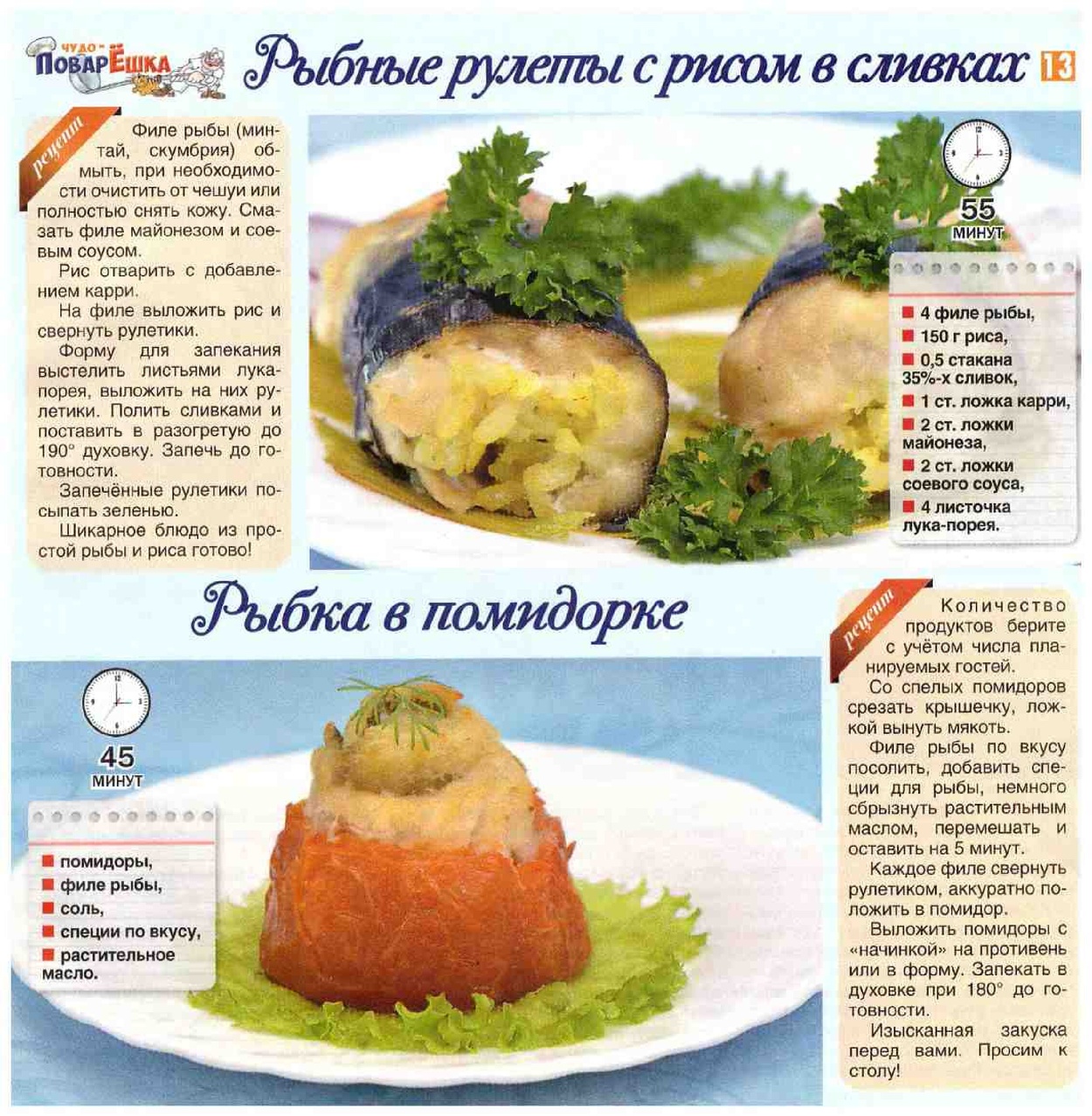 Рыбные рулеты с рисом в сливках. Рыбка в помидорке