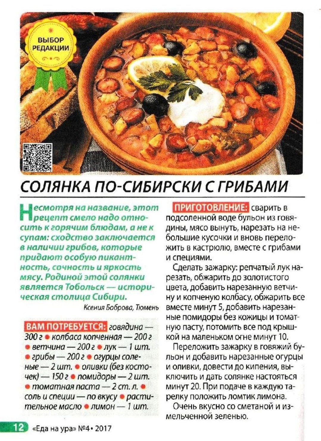 Солянка по-сибирски с грибами