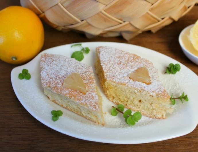 Пирог на сметане с лимоном Ингредиенты:Лимон — 1 шт.Масло сливочное — 60 г Яйца — 2 шт. Сахар — 4–5 ст. л. Сметана 15% — 2 ст. л. Мука — 200 г Сода — 1 щепотка Сахарная пудра — 1 ч. л.Приготовление:1. В миску насыпаем сахар и вбиваем...