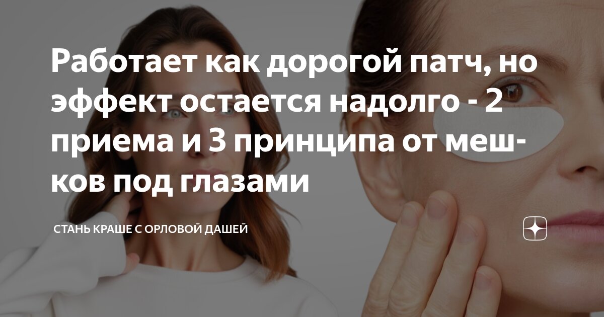 Работает как дорогой патч, но эффект остается надолго - 2 приема и 3 принципа от мешков под глазами Статья автора «Стань краше с Орловой Дашей» в Дзене ✍: А вы знали, что патчи — это не уходовое средство, которое день за днем улучшает состояние кожи, а чисто косметическое?