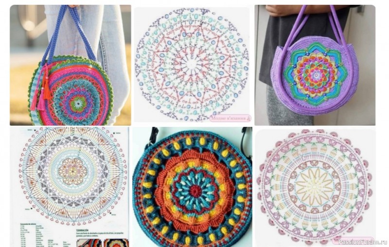 Круглые салфетки становятся сумками. Схема | Вязаные крючком аксессуары