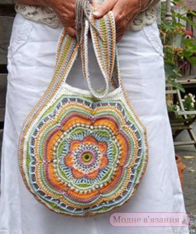 Круглые салфетки становятся сумками. Схема | Вязаные крючком аксессуары