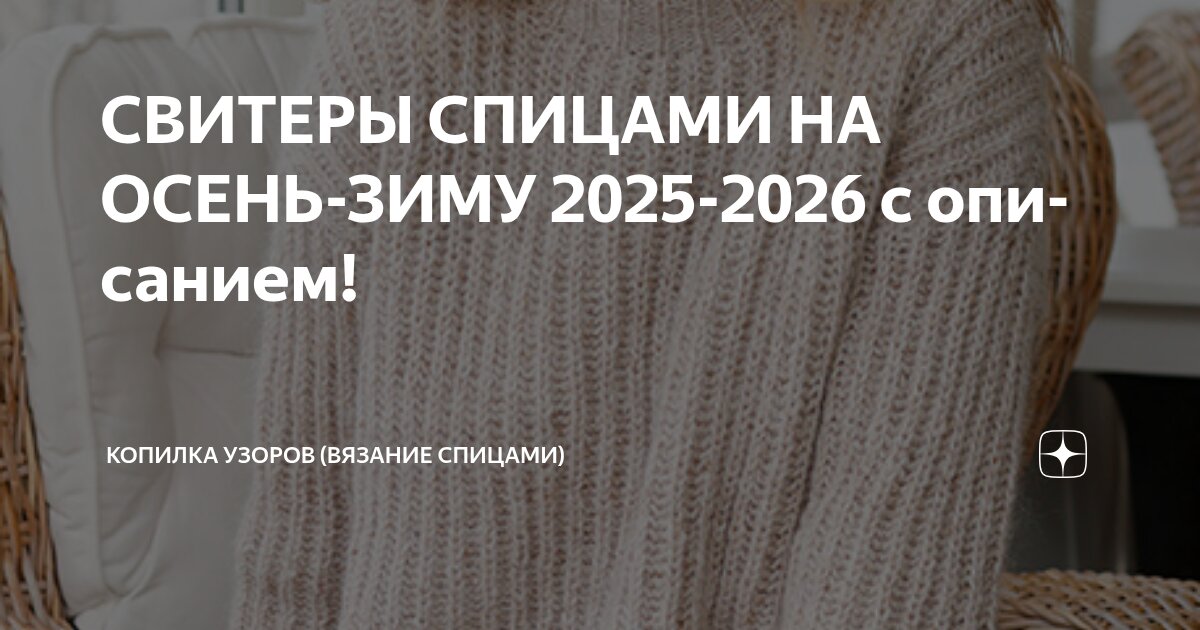 СВИТЕРЫ СПИЦАМИ НА ОСЕНЬ-ЗИМУ 2025-2026 с описанием! Статья автора «Копилка узоров (Вязание спицами)» в Дзене ✍: Добрый день, дорогие рукодельницы! Сегодня у нас с вами на обзоре замечательная подборка свитеров и джемперов.
