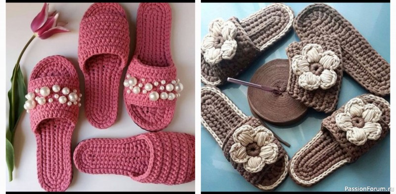 Домашние тапочки из трикотажной пряжи. Схема | Вязаные крючком аксессуары Домашние тапочки очень быстро и просто связать крючком из текстильной пряжи. Такие комнатные тапочки из текстильной пряжи можно связать для всей семьи и гостей. Начинаем вязать подошву тапочек с цепочки воздушных петель. Далее вяжем по схеме 1.Когда подошва готова,...