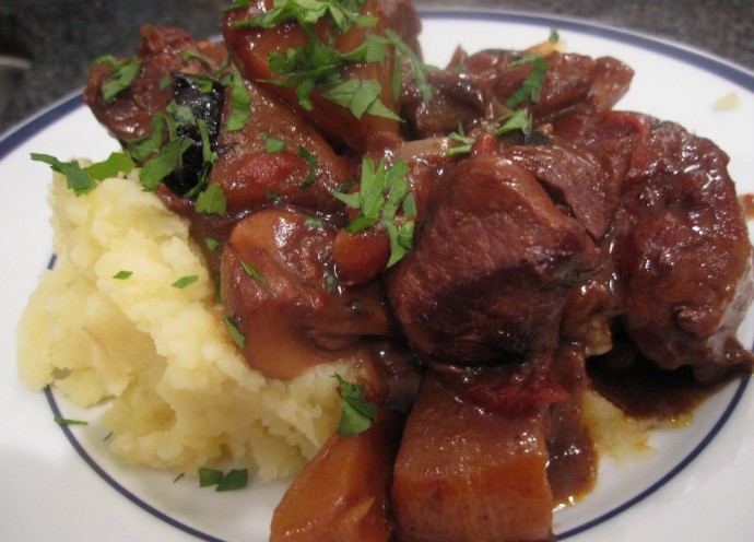 Говяжье сердце – 500 грМука – 2 ст.л.Растительное масло – 2 ст.л.Томатная паста – 2 ст.л.Лук – 1 ст.л.Морковь – 1 ст.л.Мясной бульон – 1 стаканСоль, перец – по вкусуЛавровый лист – 1 штПриготовление: