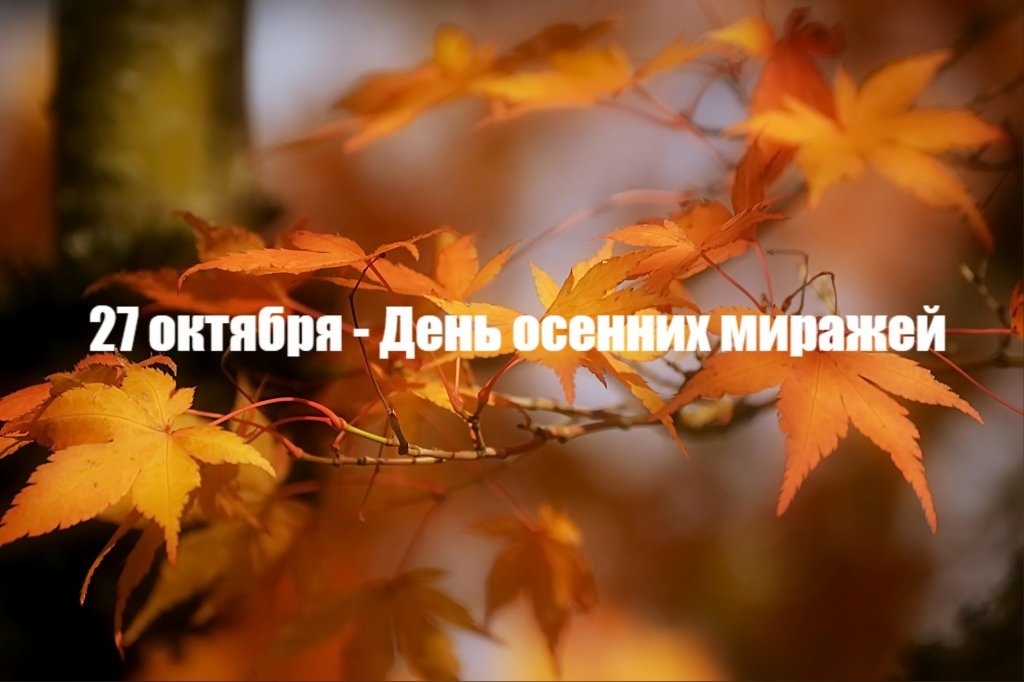 27 октября — День осенних миражей, праздник вдохновения и фантазии. Пусть твой день будет лёгким, как осенний ветер, и ярким, как солнце в листве. Открытки на День осенних миражей.
