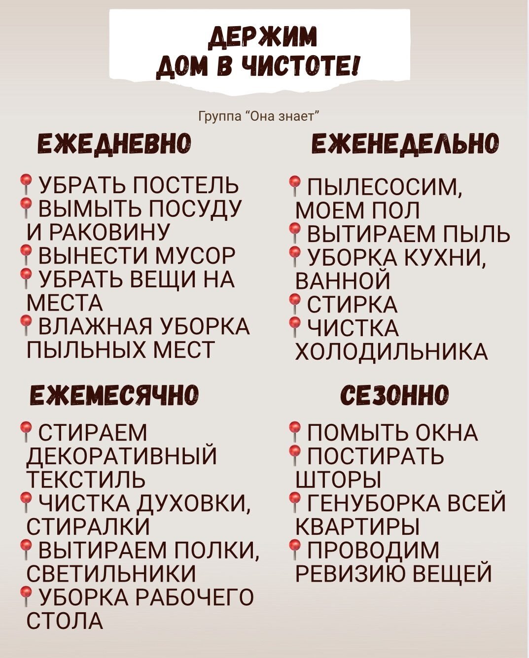 План уборки для вас! Чтобы всегда в вашем доме было чисто и уютно.