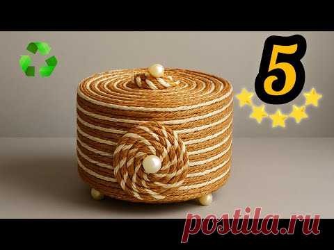 DIY Yarn Woven Storage Basket with Cardboard ♻️😍 Handmade 5-Star Craft Idea