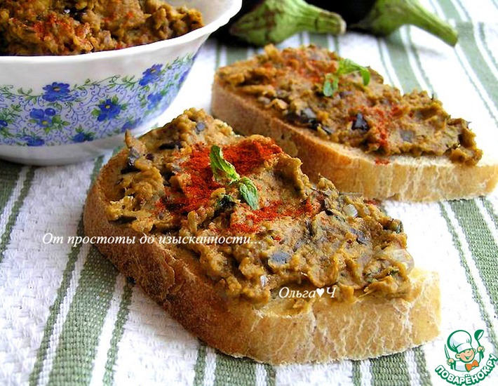- Лук и чеснок произвольно нарежьте. Обжарьте лук на растительном масле, добавьте баклажаны, нарезанные кубиками, обжарьте до мягкости, снимите с огня. Добавьте измельченный чеснок, паприку, мяту, соль и перец. Перемешайте. Измельчите с помощью погружного блендера. Подавайте к столу... С домашним хлебом или овощами для макания.