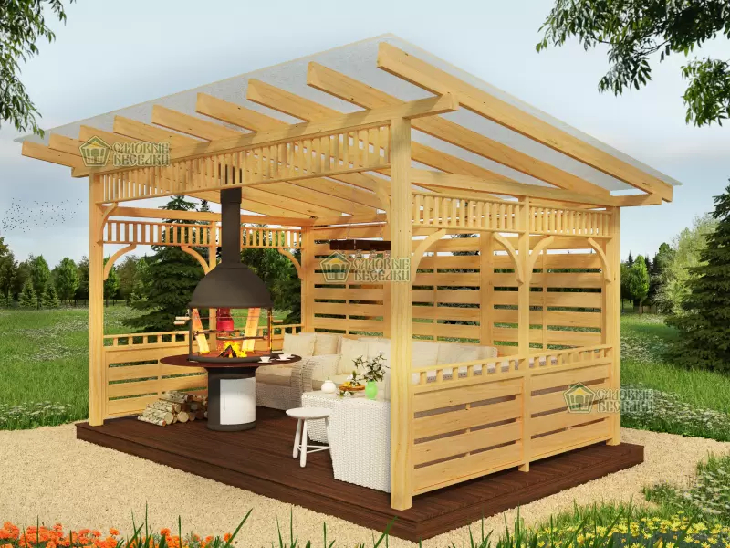 Беседка-веранда открытая с крышей из поликорбаната 3х4,5м -купить недорого по цене производителя СК "Садовые беседки" в Москве, СПб