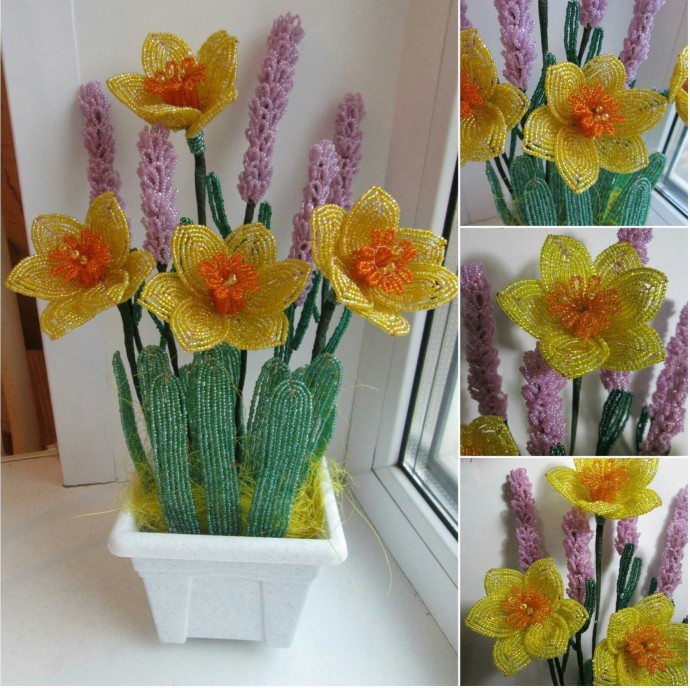 Цветочки из бисера Цветочки из бисераОт них словно веет весной и счастьем.