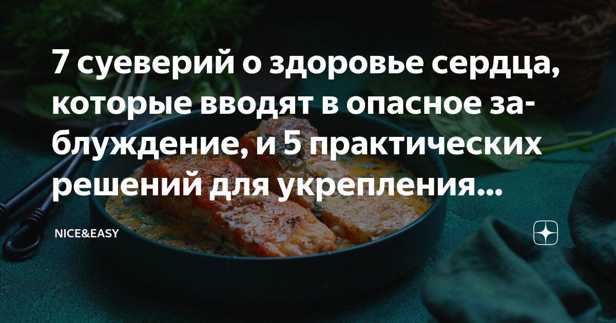 7 суеверий о здоровье сердца, которые вводят в опасное заблуждение, и 5 практических решений для укрепления сердечно-сосудистой системы Статья автора «Nice&Easy» в Дзене ✍: Всем привет! Желаю прекрасных выходных и уверена, что все наши здоровы, бодры и веселы!