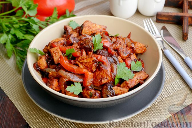 Рецепт: Жареная индейка с болгарским перцем на RussianFood.com
