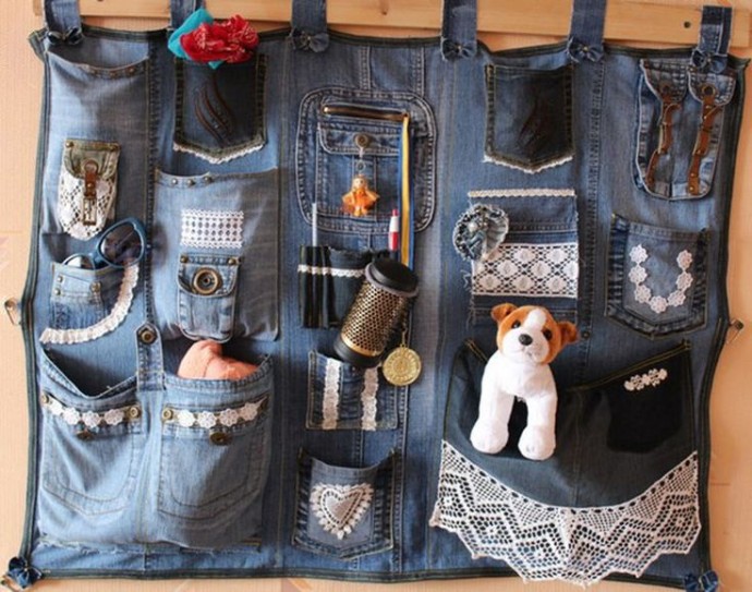 Что сделать из старых джинсов: органайзер на стену Что сделать из старых джинсов: органайзер на стенуНе спешите выбрасывать изношенные джинсы или кроить из них шорты. Деним может стать стильным аксессуаром для кухни, многоразовой сумкой или украшением интерьера.Для такого аксессуара понадобятся все части джинсов. В качестве основы...