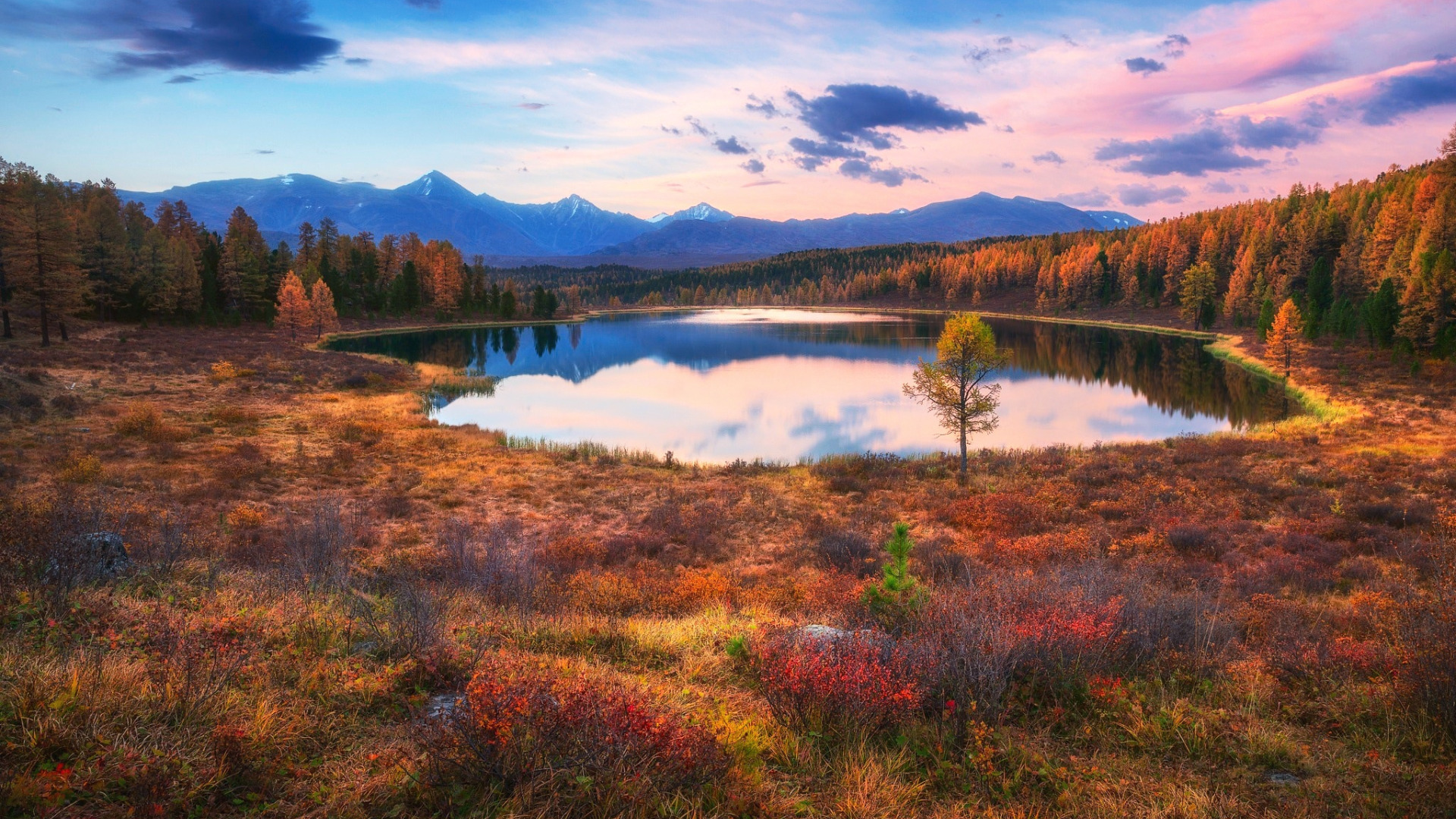 Скачать обои осень, лес, небо, озеро, краски, Россия, раздел пейзажи в разрешении 1920x1080
