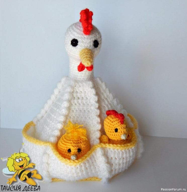 Курочка пасхальная крючком. МК | Вязаные игрушки. Мастер-классы, схемы, описание. Курочка с 6 карманами для яиц Материал: Пряжа 50 г желтого цвета, остатки пряжи красной, оранжевого, «травки» 2 искусственных глаза (2,5cm), Крючок Nr. 3 + 3,5 Наполнитель синтепон Вязание: столбики без накида, ст.с накидом шишечка = 1 шишечка из 4 петель 1 накид на крючок, вводят крючок...