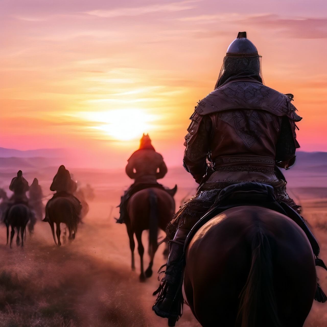 ВОИНЫ ИДУТ на ЗАПАД. Иллюстрация к книге СОКРОВИЩА НИБЕЛУНГОВ: СКАНДИНАВСКИЕ СКАЗАНИЯ И ИСТОРИЧЕСКАЯ РЕАЛЬНОСТЬ... (нейросеть Шедеврум).